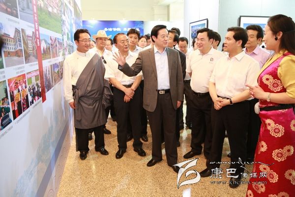 6月8日上午10時(shí),劉奇葆、王正偉來(lái)到民族文化宮,首先走進(jìn)四川甘孜藏區(qū)發(fā)展成就暨旅游圖片展現(xiàn)場(chǎng)。這里,展示的是甘孜藏區(qū)經(jīng)濟(jì)社會(huì)發(fā)展成就、自然風(fēng)光、歷史文化、民族風(fēng)情、田園藏寨等方面內(nèi)容的圖片。一幅幅圖片,一個(gè)個(gè)場(chǎng)景,劉奇葆都非常熟悉。在四川工作期間,他曾十幾次奔赴甘孜藏區(qū)考察,足跡遍布全州18個(gè)縣。劉奇葆仔細(xì)觀看展示圖片,并不時(shí)詢(xún)問(wèn)交通通信、優(yōu)勢(shì)產(chǎn)業(yè)等發(fā)展情況以及民生改善的情況。劉奇葆說(shuō),甘孜山川秀美,民族風(fēng)情濃郁,是一方充滿生機(jī)和活力的土地,希望甘孜立足自身實(shí)際,大力發(fā)展農(nóng)牧業(yè)和文化旅游業(yè),大力加強(qiáng)生態(tài)建設(shè)和環(huán)境保護(hù),大力改善民生,努力走出藏區(qū)科學(xué)發(fā)展、跨越發(fā)展之路。