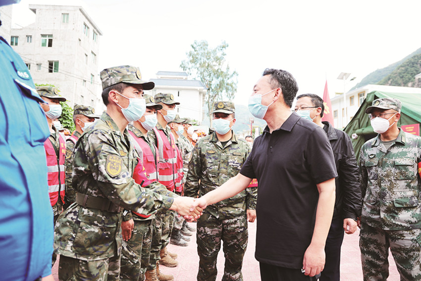 沈陽來到“9·5”瀘定縣6.8級地震抗震救災(zāi)前線指揮部,看望值班值守干部和醫(yī)務(wù)人員、地震專家、搶通保暢隊伍。他說,這次地震既檢驗了我們的應(yīng)急救援體系和能力水平,也是對各級黨組織和廣大黨員干部的巨大考驗。地震發(fā)生后,前線指揮部統(tǒng)籌調(diào)度、高效運轉(zhuǎn),各條戰(zhàn)線沖鋒陷陣、攻堅克難,確保了抗震救災(zāi)各項工作有力有序開展,彰顯了甘孜精神、甘孜速度、甘孜力量。當(dāng)前,抗震救災(zāi)仍處在關(guān)鍵時期,希望大家堅持人民至上、生命至上,咬緊牙關(guān)、繼續(xù)奮戰(zhàn),團結(jié)組織廣大干部群眾努力打贏抗震救災(zāi)這場硬仗。在看望省消防救援總隊、省森林消防總隊、解放軍陸軍勤務(wù)支援某旅、武警四川總隊機動第二支隊、特警支隊、安能集團和兄弟市州救援隊伍時,沈陽說,一方有難、八方支援,面對突發(fā)自然災(zāi)害,各方救援力量火速馳援,不畏艱險、不怕犧牲,戰(zhàn)山關(guān)、渡激流,水陸空齊發(fā)力,爭分奪秒搶救生命,一幅幅逆向而行的搶險畫面,一個個“飛奪瀘定橋式救援”的英雄身影,深刻詮釋了中華民族守望相助、和衷共濟的血脈親情,康巴兒女永遠(yuǎn)感恩、銘記于心。