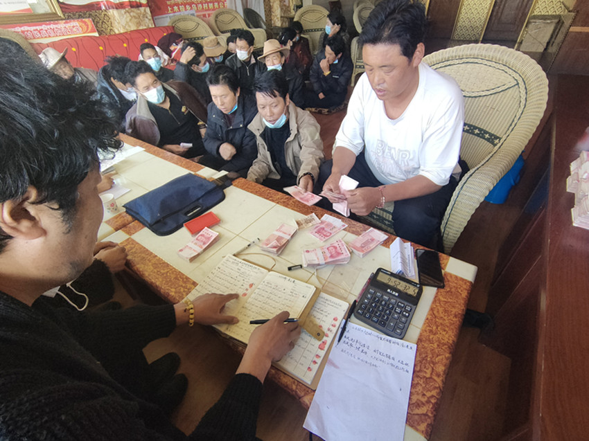 呷讓拉姆為隊(duì)員發(fā)放口罩。