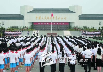 盧溝橋畔,坐落在這里的中國(guó)人民抗日戰(zhàn)爭(zhēng)紀(jì)念館雄偉莊嚴(yán)。紀(jì)念館前廣場(chǎng)上,鮮艷的五星紅旗高高飄揚(yáng)。紀(jì)念館正門上方懸掛著“勿忘國(guó)恥 圓夢(mèng)中華”的巨幅標(biāo)語(yǔ)。
