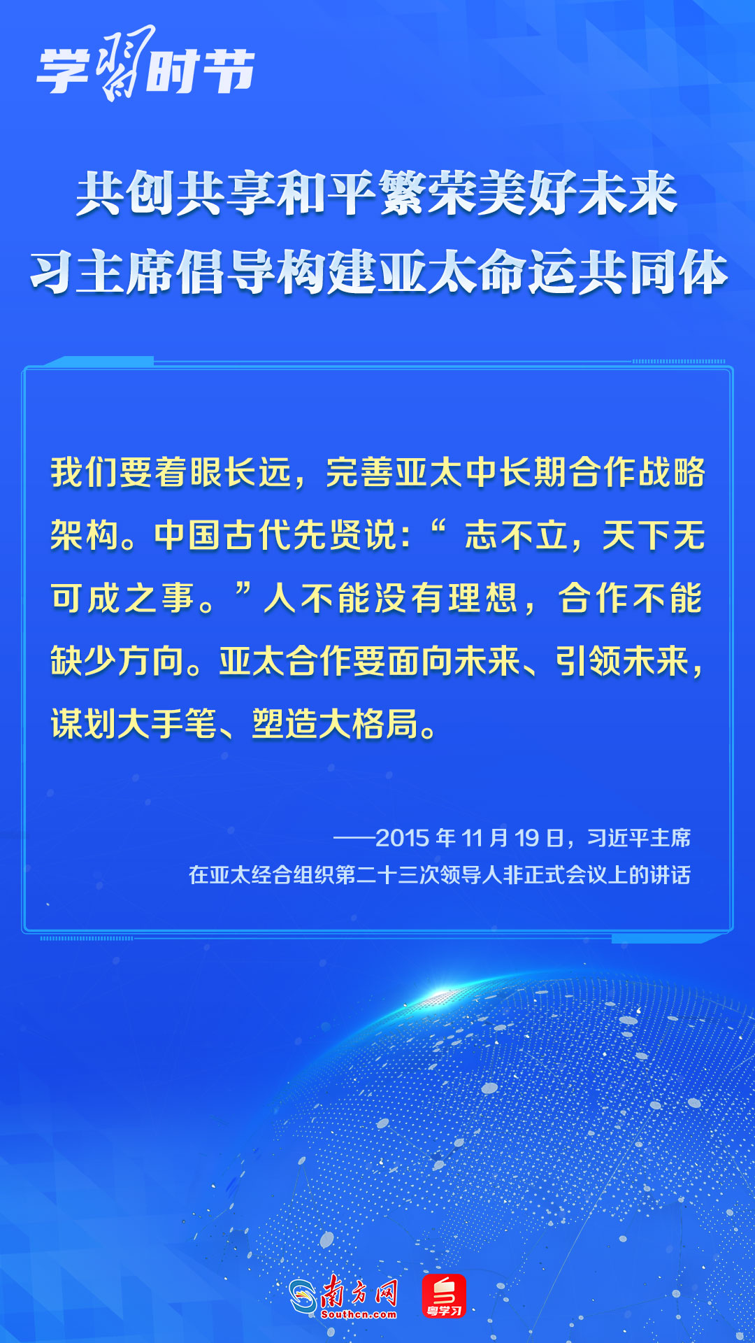 中國(guó)一直是APEC的積極參與者、貢獻(xiàn)者,為推動(dòng)建設(shè)亞太大家庭發(fā)揮了重要作用。習(xí)近平主席多次出席APEC會(huì)議,以中國(guó)主張促進(jìn)亞太合作,以中國(guó)貢獻(xiàn)推動(dòng)亞太發(fā)展,以中國(guó)智慧凝聚亞太共識(shí),多次闡述構(gòu)建開放包容、創(chuàng)新增長(zhǎng)、互聯(lián)互通、合作共贏的亞太命運(yùn)共同體的理念主張和重大意義,讓我們一同學(xué)習(xí)。