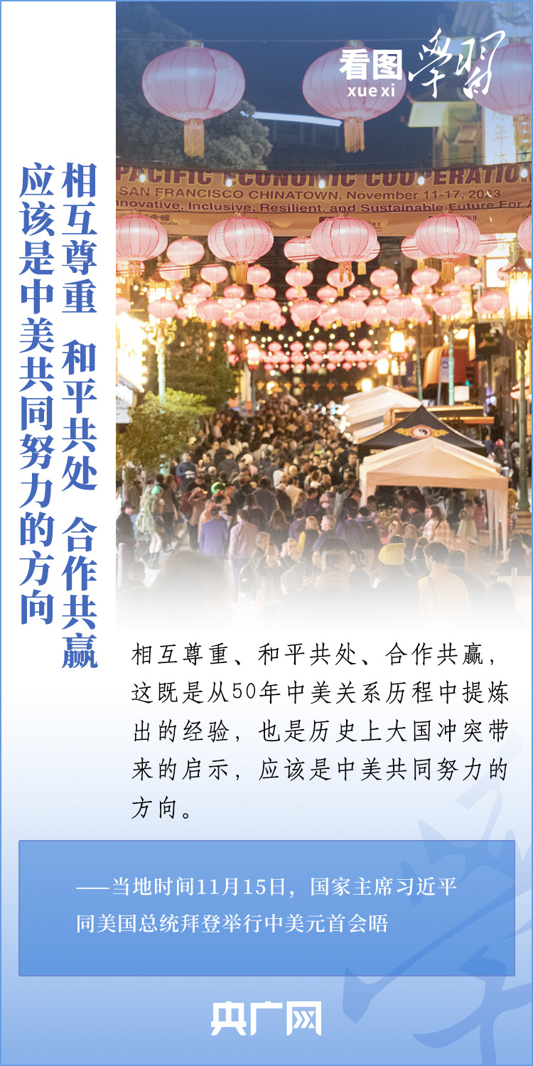 當(dāng)?shù)貢r(shí)間11月15日,國(guó)家主席習(xí)近平在美國(guó)舊金山斐洛里莊園同美國(guó)總統(tǒng)拜登舉行中美元首會(huì)晤。兩國(guó)元首就事關(guān)中美關(guān)系的戰(zhàn)略性、全局性、方向性問(wèn)題以及事關(guān)世界和平和發(fā)展的重大問(wèn)題坦誠(chéng)深入地交換了意見(jiàn)。習(xí)近平主席指出,大國(guó)競(jìng)爭(zhēng)解決不了中美兩國(guó)和世界面臨的問(wèn)題。這個(gè)地球容得下中美兩國(guó)。中美各自的成功是彼此的機(jī)遇。一起來(lái)學(xué)習(xí)!