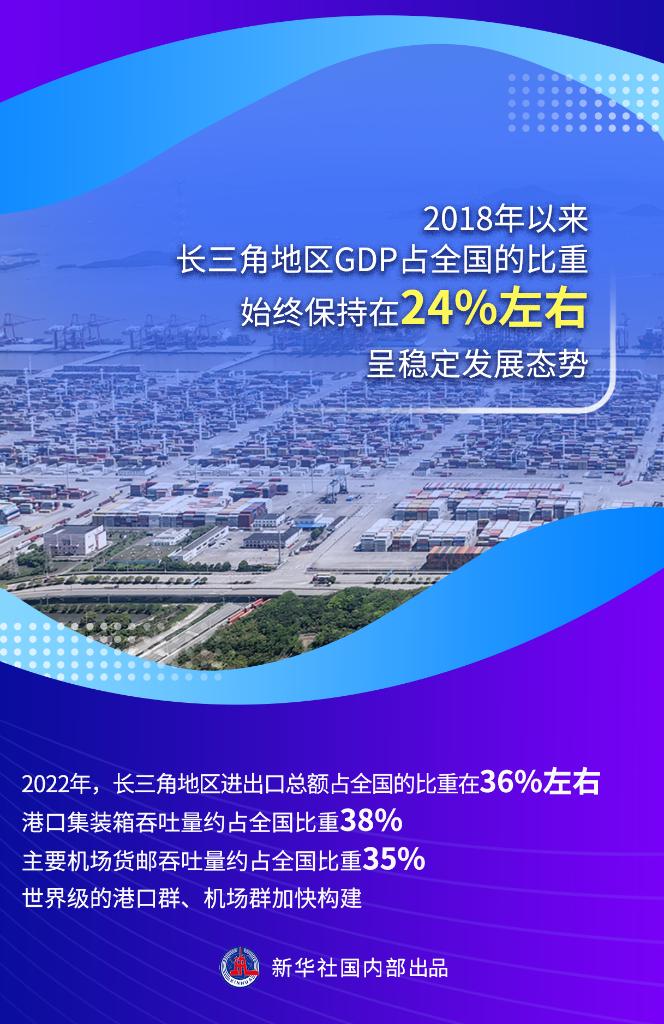 2022年,長三角地區(qū)進出口總額占全國的比重在36%左右,港口集裝箱吞吐量約占全國比重38%,主要機場貨郵吞吐量約占全國比重35%,世界級的港口群、機場群加快構(gòu)建。