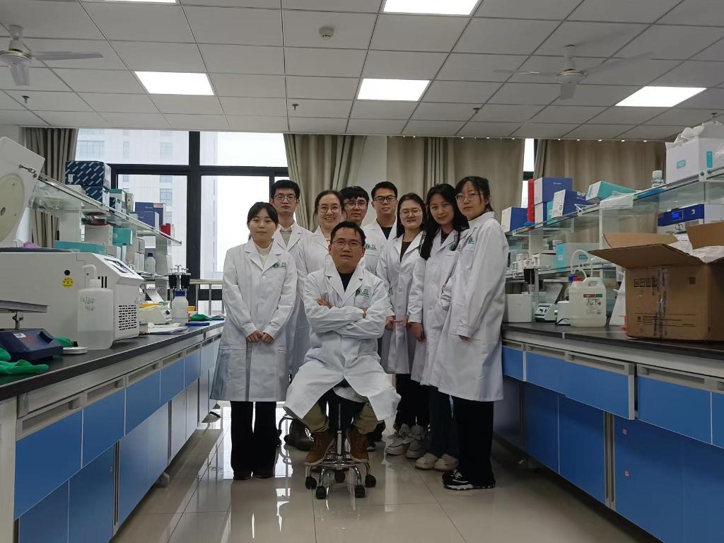 2021年,徐馬飛(前排居中)在安徽醫(yī)科大學(xué)的實(shí)驗(yàn)室與科研團(tuán)隊(duì)合影。(受訪者供圖)