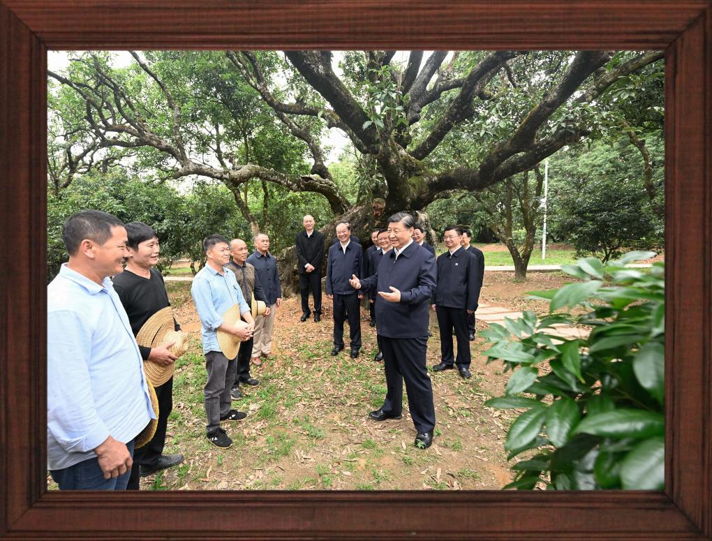 12月31日晚,國家主席習(xí)近平發(fā)表二〇二四年新年賀詞。 推近、定格、銘記,透過總書記身后書架上的一張張照片,我們記住過去,也對未來充滿信心。 不變的情懷 幾張老照片,在書架上擺放多年,人們已經(jīng)非常熟悉。 習(xí)近平同志青年時期的軍裝照,連續(xù)第3年出現(xiàn),擺放在書架醒目位置。 這令人不由得想起10年前的一段暖心對話—— 2013年11月,湖南十八洞村,村民石拔三老人見到了來此考察的習(xí)近平總書記。 “怎么稱呼您?”“我是人民的勤務(wù)員?!?/p> 歲月流轉(zhuǎn),初心不改。從照片上的青年,到人民的勤務(wù)員,“我將無我,不負人民”的赤子情懷始終如一。 家庭是個人溫馨的港灣。習(xí)近平同志一家三口和父親習(xí)仲勛在一起、習(xí)近平同志在福州時帶女兒玩的照片,自總書記第一次發(fā)表新年賀詞以來,就一直擺在書架上。 2023年,又有幾張新的總書記家庭照片映入眼簾。 一張是習(xí)仲勛同志的單人照。 2023年是習(xí)仲勛同志誕辰110周年。習(xí)近平總書記從小深受父親影響,形容父親“像一頭老黃牛,為中國人民默默地耕耘著”,“這也激勵著我將自己的畢生精力投入到為人民群眾服務(wù)的事業(yè)中,報效養(yǎng)育我的錦繡中華和父老鄉(xiāng)親”。 同夫人彭麗媛在深圳錦繡中華景區(qū)的留影、習(xí)近平夫婦懷抱女兒的合影,也是第一次出現(xiàn)在書架上。 天下之本在家。習(xí)近平總書記指出,家庭和睦則社會安定,家庭幸福則社會祥和,家庭文明則社會文明。 修身、齊家,家好、國更好。習(xí)近平總書記率先垂范,對家人的責(zé)任、對家風(fēng)的傳承、對家教的認真令人動容。 不停的步履 11張2023年拍攝的照片,留下習(xí)近平總書記過去一年治國理政的經(jīng)典瞬間。 2023年,習(xí)近平總書記共進行了16次國內(nèi)考察,出訪4次,在國內(nèi)數(shù)十次會晤到訪的各國各界人士。 將鏡頭拉遠,總書記的身影不辭萬里—— 向南,習(xí)近平總書記來到位于我國大陸最南端的廣東省湛江市徐聞縣;向北,考察中國最北端的黑龍江省漠河市北極村;向西,視頻連線守衛(wèi)祖國西大門的新疆軍區(qū)紅其拉甫邊防連執(zhí)勤哨所。 這張同紅其拉甫邊防連執(zhí)勤哨所等進行視頻通話的拼版照片,正是書架上的新照片之一。 “黃河九曲、長江奔流,總讓人心潮澎湃、豪情滿懷?!?023年,長江流經(jīng)的11個省市里,習(xí)近平總書記考察了4個;黃河沿線的9個省區(qū)里,考察了5個;大運河涉及的8個省市里,考察了5個。 北瀕長江、南臨廬山、東枕鄱湖,江西九江的中國石化九江分公司位置特殊。10月,習(xí)近平總書記來到這里時,員工們圍攏過來紛紛向總書記問好。 總書記親切地說,希望你們按照黨中央對新型工業(yè)化的部署要求,堅持綠色、智能方向,扎扎實實、奮發(fā)進取,為保障國家能源安全、推動石化工業(yè)高質(zhì)量發(fā)展作出新貢獻。 “追求卓越 勇創(chuàng)一流”——墻上的標語仿佛大家的回應(yīng)。這一幕,也被相機定格。 將鏡頭推近,總書記的關(guān)切無微不至—— 這是對生產(chǎn)的關(guān)心。 萬畝甘蔗林中,習(xí)近平總書記同身著民族服裝的蔗農(nóng)走在一起,大家的笑容像甘蔗一樣甜??倳洝盀楸U蠂姨菢I(yè)安全、促進蔗農(nóng)增收致富發(fā)揮更大作用”的叮嚀深入人心。 古老荔枝樹下,總書記同現(xiàn)場技術(shù)人員親切交流,指出要著力做好“土特產(chǎn)”文章,以產(chǎn)業(yè)振興促進鄉(xiāng)村全面振興。 這是對企業(yè)的關(guān)注。 9月,習(xí)近平總書記來到浙江義烏國際商貿(mào)城考察,人們紛紛從商鋪中走出來,掌聲、問候聲、歡呼聲此起彼伏。 面對商戶、小企業(yè)主們,總書記點贊道:“義烏小商品闖出了大市場、做成了大產(chǎn)業(yè),走到這一步很了不起,每個人都是參與者、建設(shè)者、貢獻者?!?/p> 這是對人民的關(guān)懷。 2023年,華北、黃淮等地出現(xiàn)極端降雨,引發(fā)洪澇和地質(zhì)災(zāi)害。 北方入冬之際,習(xí)近平總書記來到北京、河北受災(zāi)較重的相關(guān)地區(qū),看望慰問受災(zāi)群眾。書架上這張照片,便是總書記在北京門頭溝妙峰山鎮(zhèn)水峪嘴村考察時留下的。 一度被洪水淹沒的水峪嘴村已經(jīng)修葺一新,村民家中窗明幾凈、暖氣充足。 少年兒童的成長,習(xí)近平總書記一直牽掛在心,書架上多次出現(xiàn)總書記同孩子們在一起的場景。 2023年精選的,是一張習(xí)近平總書記在北京育英學(xué)校的照片。 看到孩子們正在學(xué)生農(nóng)場勞動,總書記關(guān)心地說:“希望同學(xué)們從‘學(xué)農(nóng)’中感受到農(nóng)作的艱辛和農(nóng)民的不易,從小養(yǎng)成熱愛勞動、珍愛糧食、尊重自然的良好習(xí)慣,為建設(shè)美麗中國作貢獻?!?/p> 不竭的力量 國徽高懸,熠熠生輝。這是一個歷史性的瞬間。 2023年3月10日,北京人民大會堂。全票當選國家主席、中央軍委主席的習(xí)近平,左手撫按《中華人民共和國憲法》,右手舉拳,面向近3000名全國人大代表,鄭重宣誓。 錚錚誓言,響徹人民大會堂,回蕩在960萬平方公里土地上,回蕩在億萬中華兒女心中。 重溫激動人心的一刻,我們信心十足、精神百倍。 信心,來自堅強的領(lǐng)導(dǎo)核心—— 書架上,擺放著習(xí)近平總書記在內(nèi)蒙古自治區(qū)巴彥淖