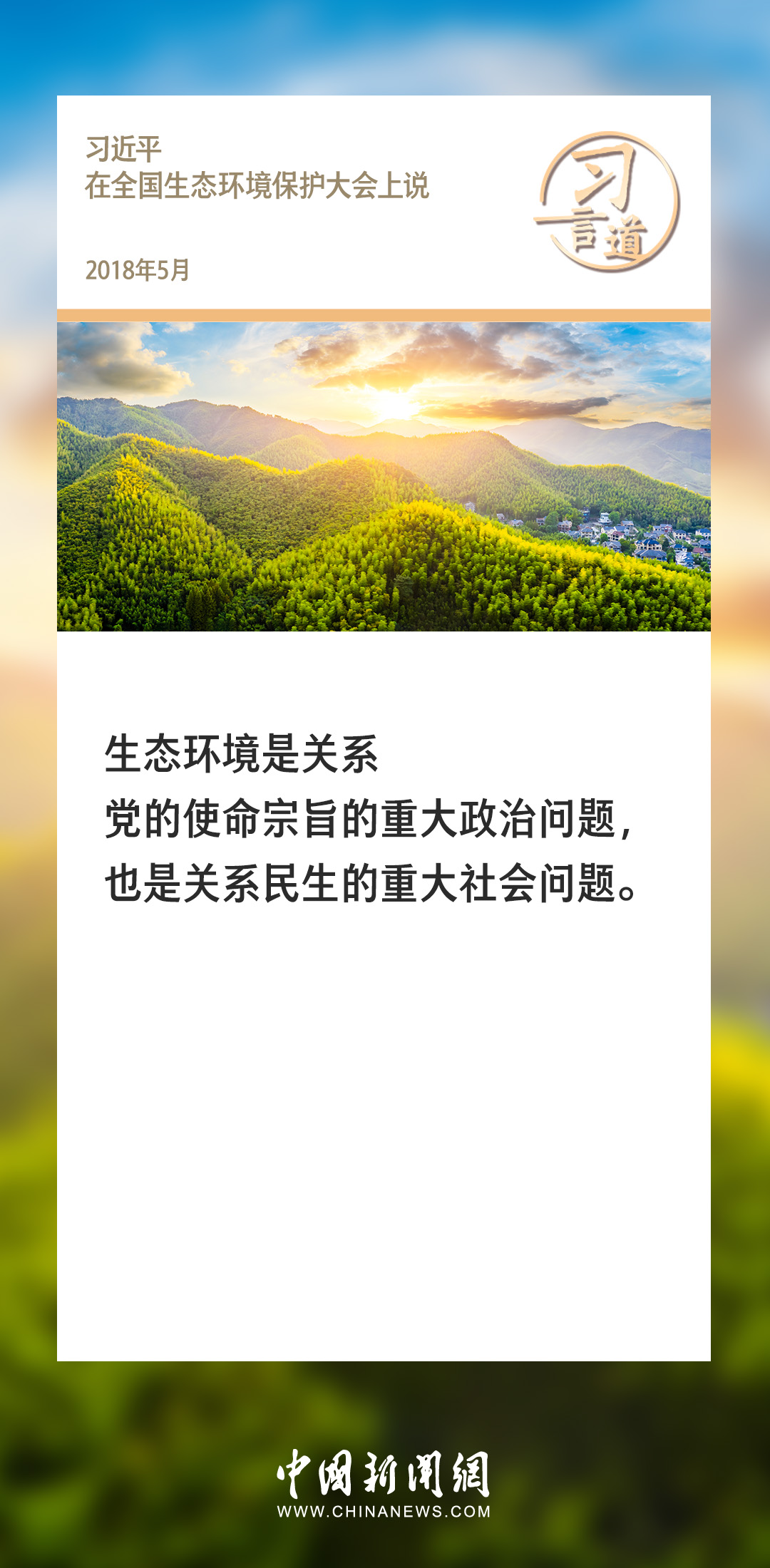 生態(tài)文明建設(shè)是關(guān)系中華民族永續(xù)發(fā)展的根本大計。黨的十八大以來,習近平總書記就生態(tài)文明建設(shè)發(fā)表過一系列重要論述,諸多“金句”深入人心。