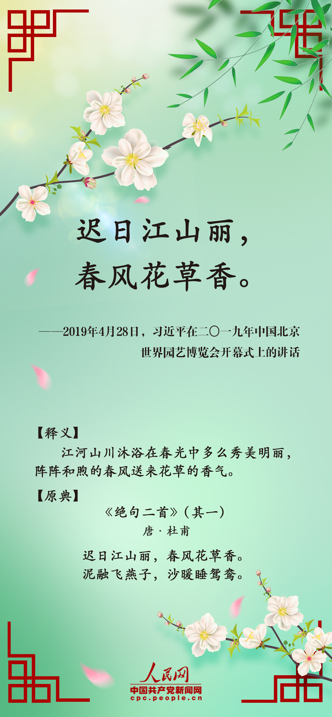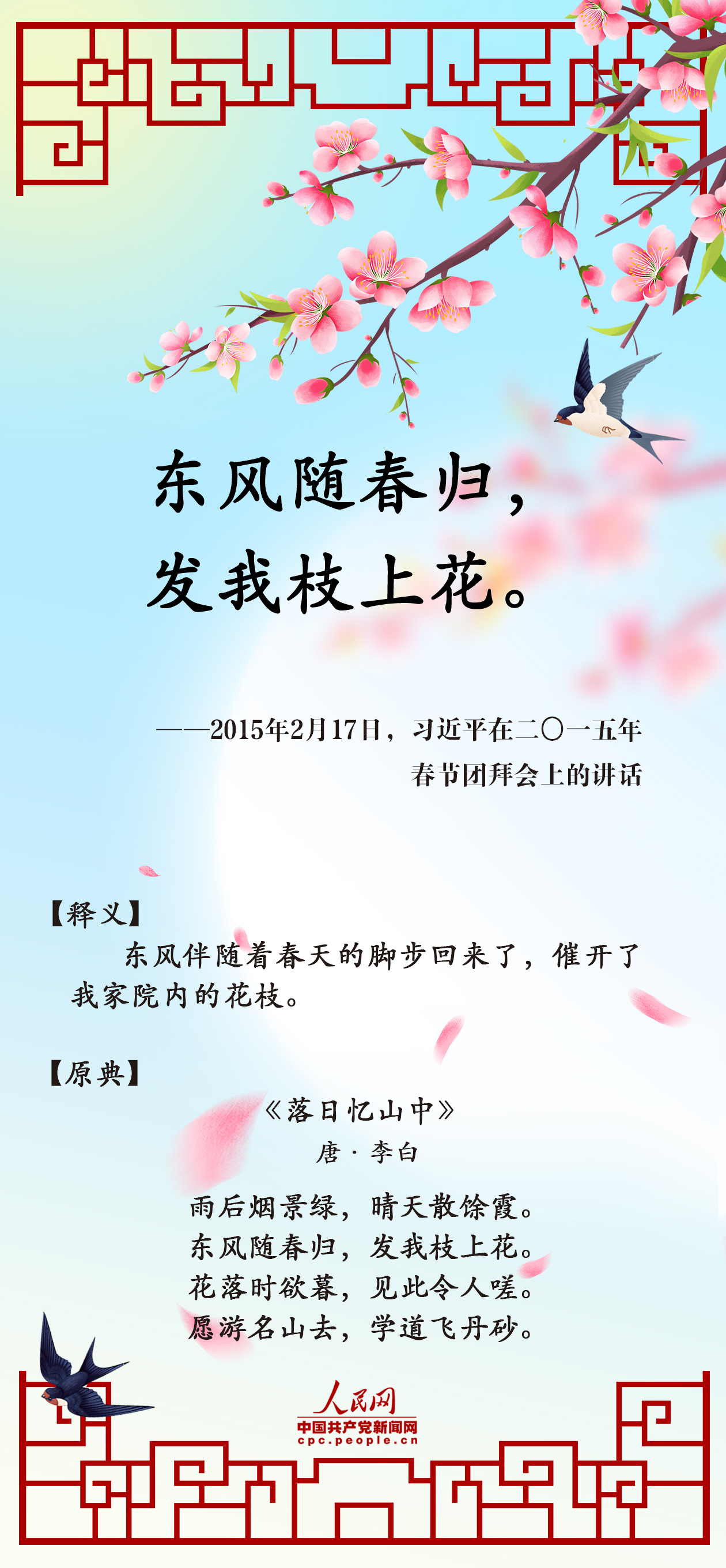 春是新的開始,是萬物生發(fā)、欣欣向榮的美好時節(jié)。習近平總書記曾多次引經據典,用詩文名句展現(xiàn)生機盎然的春天景象。一年之計在于春,一起領會中華傳統(tǒng)文化的深刻內涵,凝聚蓬勃向上的發(fā)展之力。