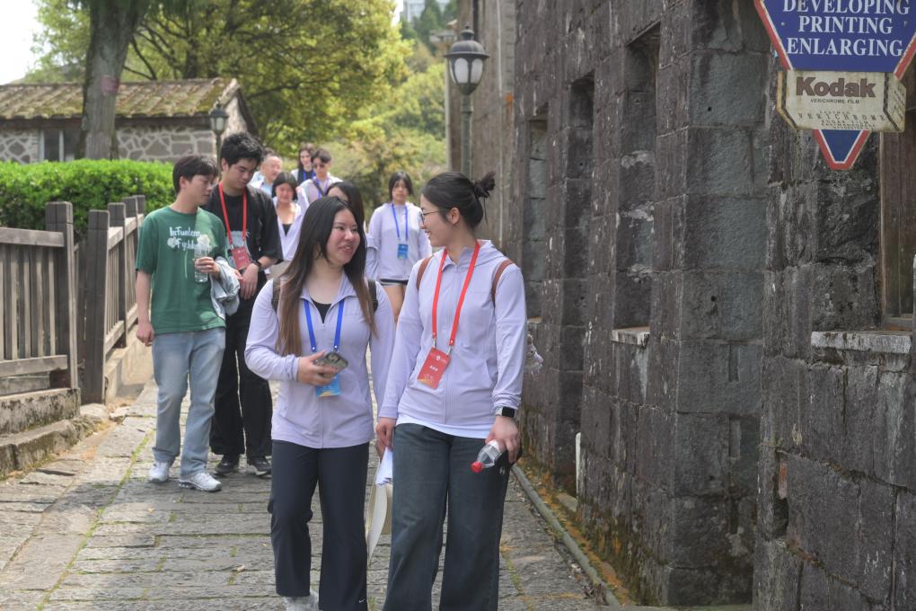 ??3月25日,福州大學(xué)外國語學(xué)院學(xué)生(前右)與美國太平洋大學(xué)學(xué)生(前左)在福州鼓嶺老街漫步交流。當(dāng)日,來自美國俄勒岡大學(xué)、布朗大學(xué)、奧斯威格高級中學(xué)等校的美國學(xué)生與福州大學(xué)學(xué)生齊聚福州鼓嶺,參加“讀懂中國 相約福建”友好交流活動。兩國青少年走訪鼓嶺老街、萬國公益社、柳杉王公園等,感受鼓嶺百年中外交融歷史風(fēng)貌,了解中美交往往事,暢談期待與希望,再續(xù)中美民間友好交往的“鼓嶺故事”。 新華社記者林善傳攝