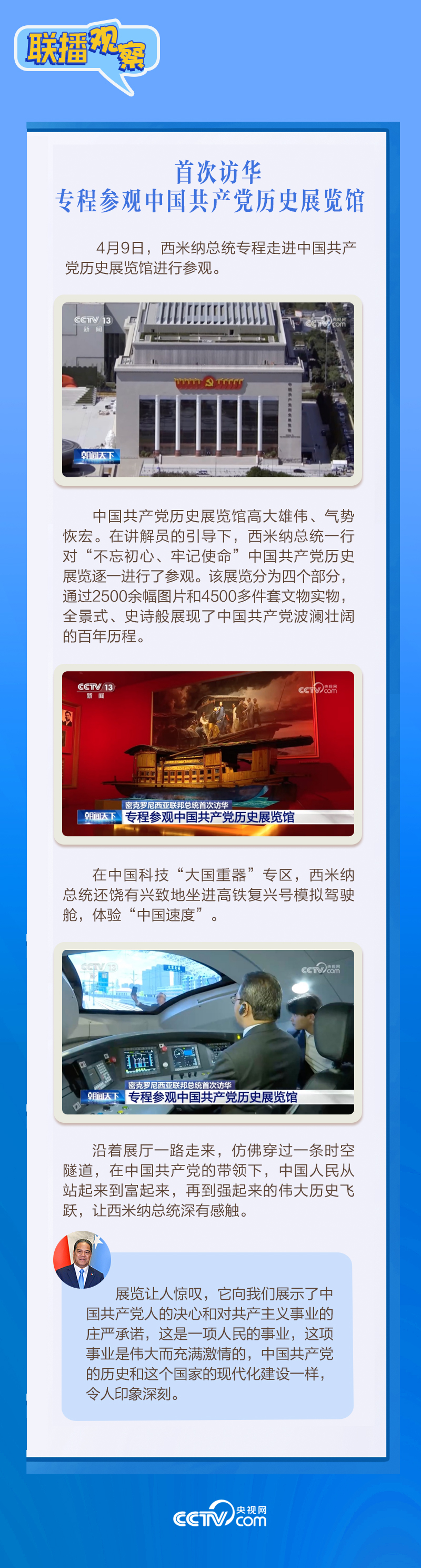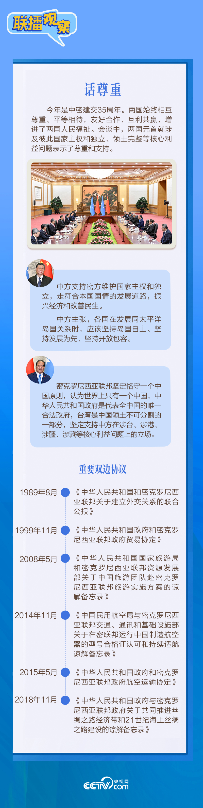 聯(lián)播+應(yīng)習(xí)近平主席邀請,密克羅尼西亞聯(lián)邦總統(tǒng)韋斯利·西米納于4月5日至12日對中國進(jìn)行國事訪問。4月9日下午,習(xí)近平主席在北京人民大會堂同西米納總統(tǒng)舉行會談,就雙邊關(guān)系發(fā)展及共同關(guān)心的問題深入交換意見。雙方會談哪些細(xì)節(jié)值得關(guān)注?央視網(wǎng)《聯(lián)播觀察》帶您了解。