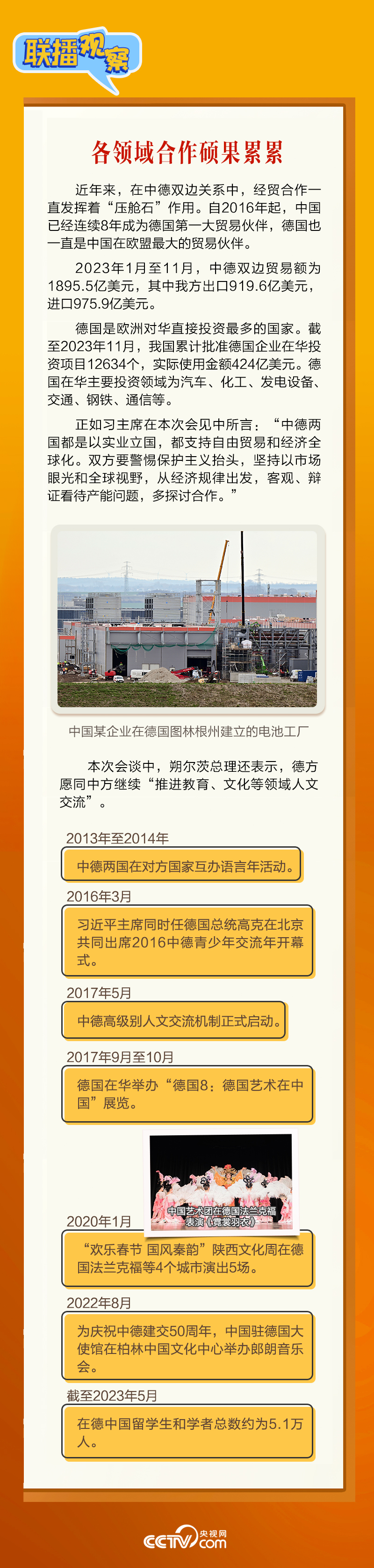 4月16日上午,習(xí)近平主席在北京釣魚臺國賓館會見朔爾茨總理。會見中,習(xí)主席強調(diào),要“牢牢把握中德是全方位戰(zhàn)略伙伴這一定位”。中德建立全方位戰(zhàn)略伙伴關(guān)系10年來,兩國如何共同發(fā)展,相互成就?央視網(wǎng)《聯(lián)播觀察》帶您了解。