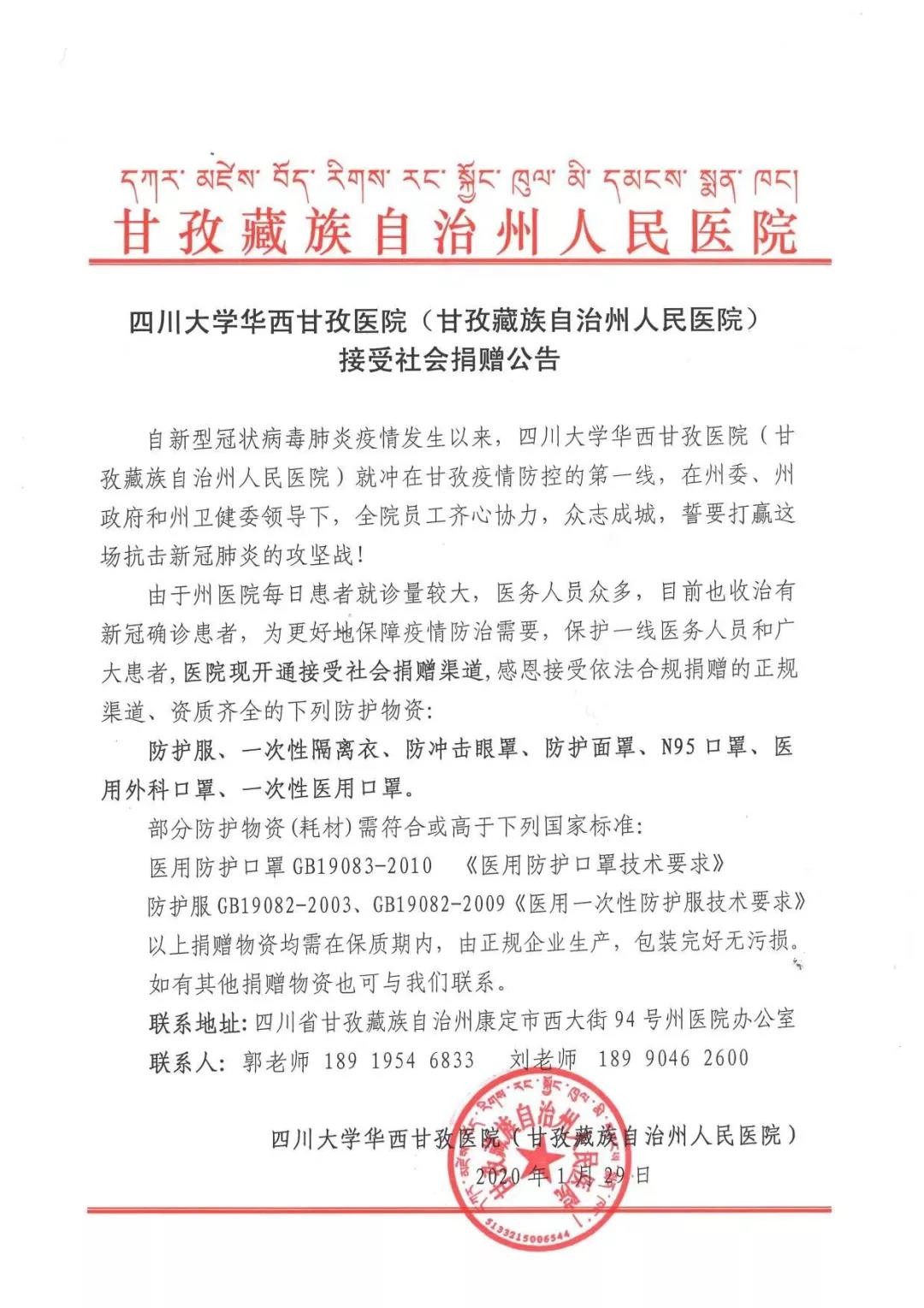 甘孜州紅十字會(huì)接受社會(huì)捐贈(zèng)公告