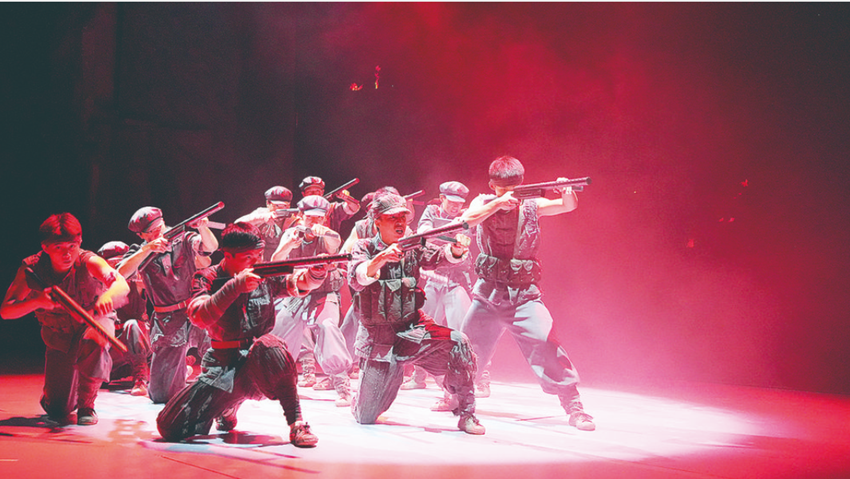 在大渡河畔落筆,繪就波瀾壯闊歷史畫卷。當(dāng)《飛奪瀘定橋》的演員們站在現(xiàn)代聲光電結(jié)合的舞臺(tái)上,以歌舞讓時(shí)光翻轉(zhuǎn)呈現(xiàn),讓人恍然回到了那炮火沖天的革命年代,不僅喚醒了觀眾的時(shí)代記憶,也激發(fā)了情感共鳴。這些情感共鳴的本源,來(lái)自《飛奪瀘定橋》創(chuàng)作團(tuán)隊(duì)的誠(chéng)意。“以文達(dá)心,以品入作。這是大家對(duì)這臺(tái)大型原創(chuàng)舞臺(tái)劇的創(chuàng)作態(tài)度。”劇目出品人、瀘定縣紅飄帶文化產(chǎn)業(yè)有限責(zé)任公司董事長(zhǎng)尹航表示,主創(chuàng)團(tuán)隊(duì)帶著紅色情懷和使命來(lái)創(chuàng)作《飛奪瀘定橋》,通過(guò)突出紅色,堅(jiān)守紅色,融合音樂(lè)、舞蹈、多媒體和AI生成技術(shù)等多種表現(xiàn)形式,經(jīng)反復(fù)打磨提升后,把該劇打造成一部紅色文化旅游演藝精品。在瀘定橋邊,戰(zhàn)士們嚴(yán)陣以待。巨大的鐵鎖橫穿整個(gè)舞臺(tái),隨著遠(yuǎn)處炮火聲的響起,大渡河水激流翻滾,撞擊出層層浪花……全長(zhǎng)60分鐘的《飛奪瀘定橋》讓觀眾在沉浸式的觀劇體驗(yàn)中感受飛奪瀘定橋的震撼,回望那段悲壯而令人肅然起敬的歷史。