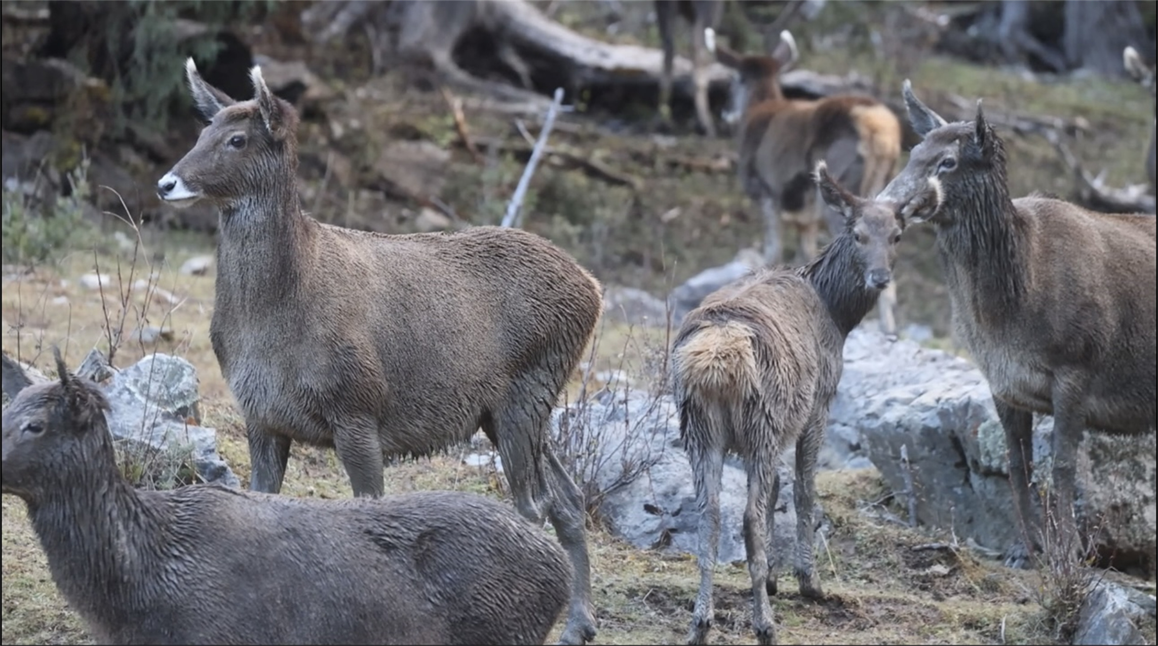 本網(wǎng)訊 近日,白玉縣察松多自然保護(hù)區(qū)境內(nèi)筆者采風(fēng)途中拍到多群國家一級保護(hù)動物——白唇鹿及國家二級保護(hù)動物——巖羊。