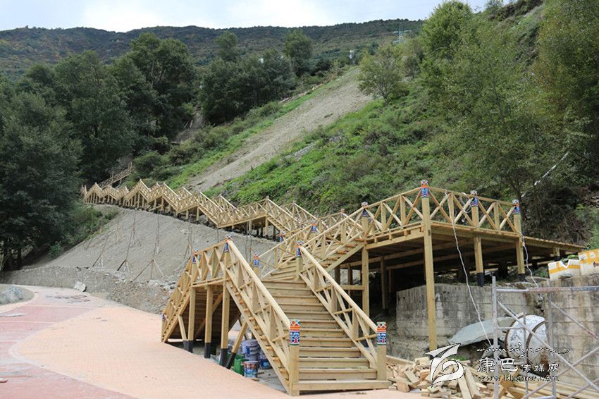 日前記者來到現(xiàn)場,實(shí)地體驗(yàn)了在建中的爐巷·文成路。從甘孜日?qǐng)?bào)社到公主橋,一路上河堤已經(jīng)用漢白玉的石材建起了沿河欄桿,上面雕刻著吉祥八寶圖案。山路中還設(shè)計(jì)了一個(gè)較大的亭子,以這個(gè)亭子為中心,上通南無寺,下至將軍橋。一條藏式木制階梯長廊與白土坎村的阿里布果游道相連接,站在長廊的底端向上看階梯長廊,長廊就像一條在山間蜿蜒的巨龍,給爐巷·文成路添上了一抹神秘色彩。