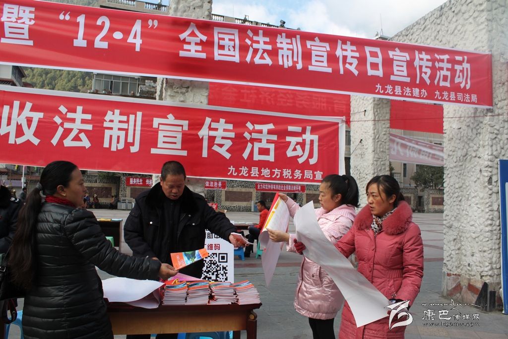 在活動現(xiàn)場,各單位采取以通過發(fā)放法制宣傳資料、法制日歷掛圖、現(xiàn)場進行法律咨詢、展出法制圖片展板、懸掛橫幅等靈活多樣的宣傳方式,多角度、多層次地宣傳了《憲法》、《九龍縣“六五“普法宣傳手冊》、《安全生產(chǎn)法》、《環(huán)境保護法》、《移民政策法律法規(guī)宣傳手冊》、《道路交通安全法》、《稅法》、《食品安全法》、《勞動合同法》、《森林防火條例》等與人民群眾密切相關的法律法規(guī)知識。