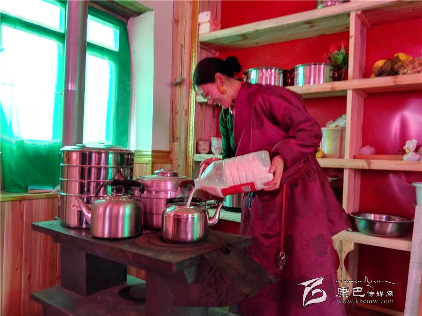 走進(jìn)江巴達(dá)吉的家里,一股熱浪撲面而來,小鋼爐上燒著熱水,幾個女人正在備料準(zhǔn)備包酥油包子和牛肉餃子。藏桌上擺滿了糖果、牛肉,豐盛的食物琳瑯滿目。江巴達(dá)吉愜意地喝著奶子茶,知足和幸福寫在臉上。