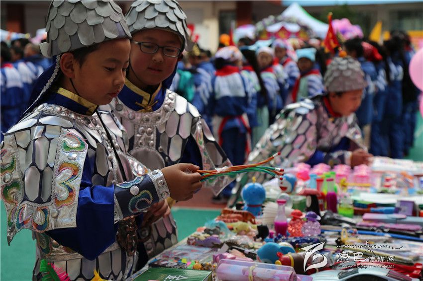 活動(dòng)現(xiàn)場(chǎng),各班各出奇招推銷商品,為了吸引顧客,有的班級(jí)設(shè)計(jì)了具有本班特色的口號(hào)、宣傳牌;有的班級(jí)學(xué)生還裝扮成“兵馬俑”現(xiàn)場(chǎng)表演吸引顧客;有的在展位前進(jìn)行舞蹈、歌唱表演;還有的現(xiàn)場(chǎng)流動(dòng)兜售……吸引了一批又一批顧客前來購買,吆喝聲、討價(jià)還價(jià)聲一浪高過一浪。