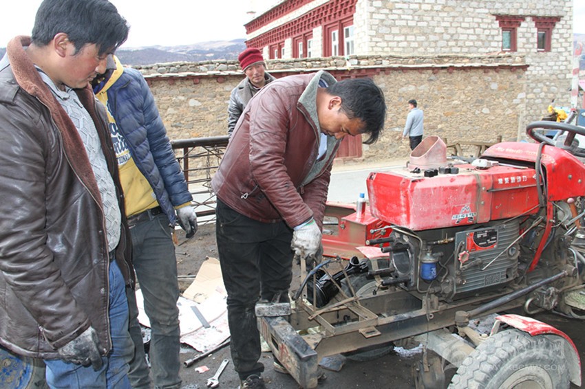 有的人家農(nóng)機壞了,又不好拖運到壓瑪維修店里的,只要一個電話,壓瑪就自己開車到別人家里去修,不收出工費,只收維修費。這樣的事情十分常見。今年2月20日晚上,格西村阿昂家里的拖拉機壞了,第二天一早又要用,壓瑪師傅騎著摩托車趕了7公里夜路,修好后只收了120元零件費。阿昂說:“要是拖到縣城修,少了1000多元脫不了手,還不算吃住和耗費的時間?!?/span>