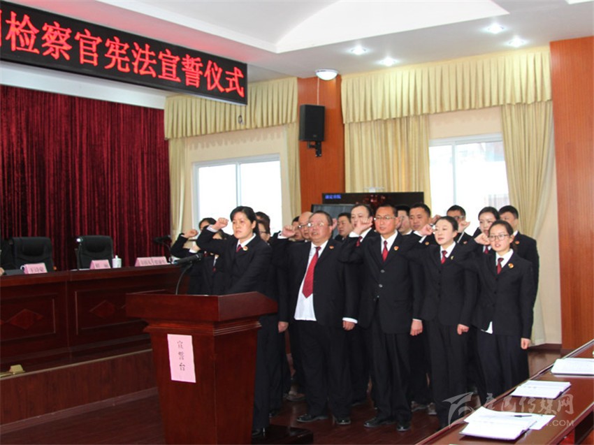 本網(wǎng)訊(李銘暇 唐雪萍文/圖)近日,康定市人民檢察院舉行了首批員額檢察官憲法宣誓儀式。19名員額檢察官高舉右手,向憲法和國旗莊嚴宣誓。宣誓完畢后,19名員額檢察官簽訂了承諾書。圖為宣誓現(xiàn)場。