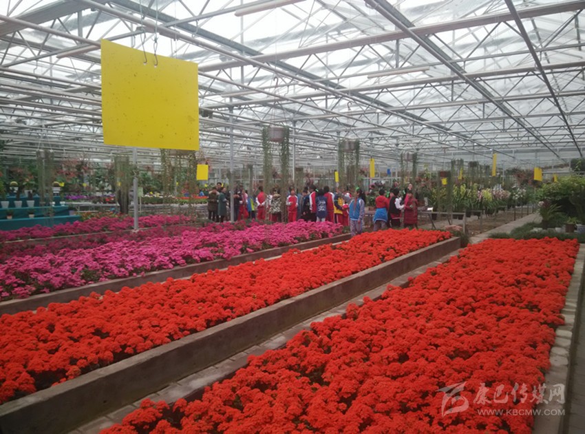 考察團坐上觀光電瓶車,穿行在產(chǎn)業(yè)園內(nèi)3000余畝的百合及各種花卉中間,香氣宜人,流連忘返;走進單棟面積達10000平米的14個連棟智能溫室花卉大棚,妖艷的水仙,高挑的百合,艷麗的百合,白色的、黃色的、紅色的、粉色的,讓人眼花繚亂,置身于花海中的你,一年四季都有花看、有花賞。