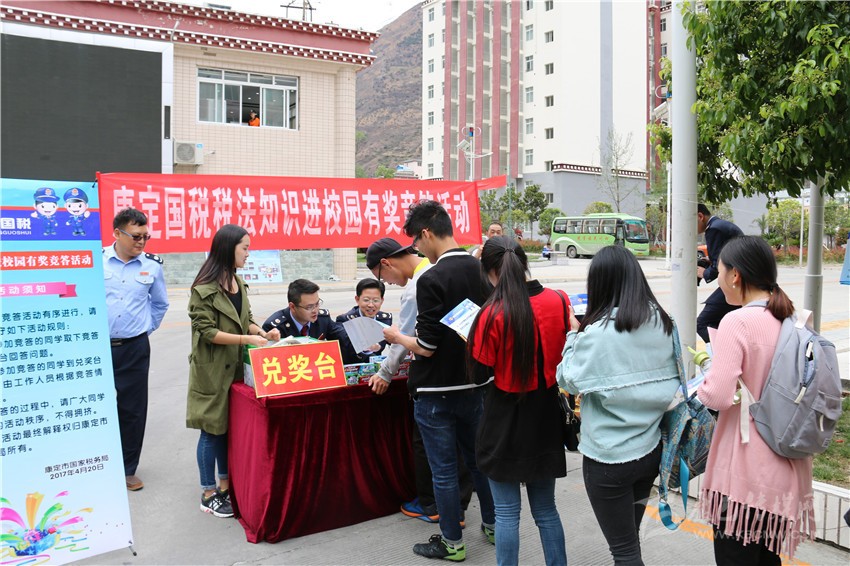 本網(wǎng)訊(吳海波 記者 張嗥)購物時(shí)商家不給發(fā)票,可以打哪個(gè)電話進(jìn)行投訴?增值稅納稅人分為哪幾類?”這一系列與生活息息相關(guān)的稅法知識有獎答題,引來了眾多四川民族學(xué)院同學(xué)的熱情參與。4月20 日,康定市稅法宣傳月活動持續(xù)升溫,稅法宣傳首次走進(jìn)高等院校。