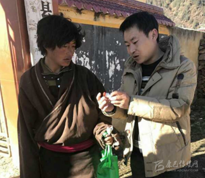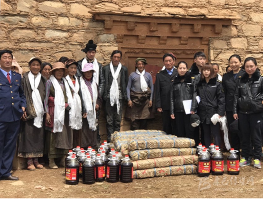 新龍縣委宣傳部干部安子子拉為尤拉西洛依村村民發(fā)放農(nóng)用物資