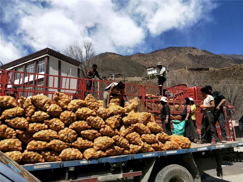 本網(wǎng)訊(新龍縣委中心報道組 安子 文/圖)“我們家的地前幾天就耕好了,第一書記讓我們等一下,縣上要給我們發(fā)種子,發(fā)高產(chǎn)量的土豆種子”新龍縣大蓋鎮(zhèn)村民高興地說。 近日,新龍縣農(nóng)牧科技局輾轉(zhuǎn)于各村各鄉(xiāng)鎮(zhèn),為農(nóng)牧民群眾發(fā)放土豆良種,沙堆鄉(xiāng)、大蓋鎮(zhèn)、樂安鄉(xiāng)、繞魯鄉(xiāng)、色威鄉(xiāng)、如龍鎮(zhèn)等8個摘帽村共90噸土豆良種已發(fā)放。同時,縣農(nóng)牧科技局工作人員現(xiàn)場作了技術培訓,向群眾介紹土豆種植要點。縣農(nóng)牧科技局負責人表示,近幾年隨著國家對農(nóng)業(yè)支持力度的加大,農(nóng)村惠民政策越來越多,老百姓切實感受到了良種帶來增產(chǎn)的實惠,對良種發(fā)放以及種植工作非常支持。下一步將繼續(xù)發(fā)放青稞、油菜等種子以及肥料,并且常態(tài)化開展種植、施肥等方面的技術指導,切實讓群眾增收致富。