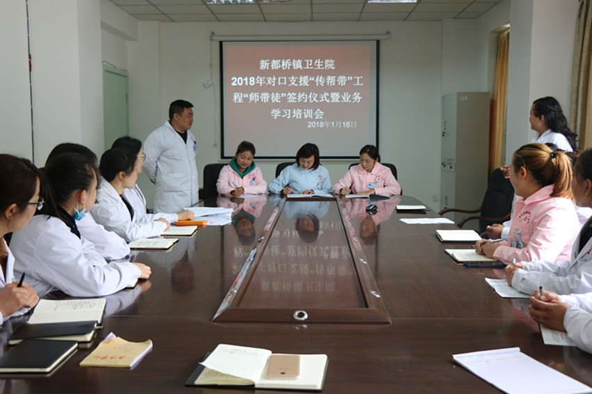 春風(fēng)沐浴、雨露滋潤(rùn);德隆情盛、高屋建瓴。為進(jìn)一步提升康定地區(qū)基層醫(yī)療衛(wèi)生機(jī)構(gòu)服務(wù)能力,打造一支有擔(dān)當(dāng)、有能力、可支撐的本土醫(yī)療衛(wèi)生人才隊(duì)伍。在對(duì)口幫扶工作中,康定市衛(wèi)計(jì)局高度重視本土人才培養(yǎng),將“傳幫帶”工作作為了重點(diǎn)。2018年1月8日,康定市疾控中心與都江堰市疾控中心通過座談商榷了“傳幫帶”幫扶方案,達(dá)成了共識(shí),下一步將通過對(duì)口幫扶,互訪交流、業(yè)務(wù)培訓(xùn),信息溝通共享等方式,在綜合管理、等級(jí)評(píng)審、人員能力建設(shè)、實(shí)驗(yàn)室檢驗(yàn)檢測(cè)能力建設(shè)、應(yīng)急處置能力建設(shè)等方面進(jìn)行重點(diǎn)“傳幫帶”。與此同時(shí),康定市第二人民醫(yī)院舉辦了對(duì)口支援“傳幫帶”工程“師帶徒”簽約儀式暨工作推進(jìn)會(huì)議。會(huì)上各位專家與選中的學(xué)員進(jìn)行現(xiàn)場(chǎng)簽約,雙方約定在今后的一年中,專家們通過理論培訓(xùn)、教學(xué)手術(shù)(操作)、教學(xué)查房、疑難病例討論、常見病多發(fā)病診治、開展新技術(shù)新業(yè)務(wù)等方面進(jìn)行指導(dǎo)、幫扶、協(xié)作,明確了各自的目標(biāo)任務(wù)和工作職責(zé)。