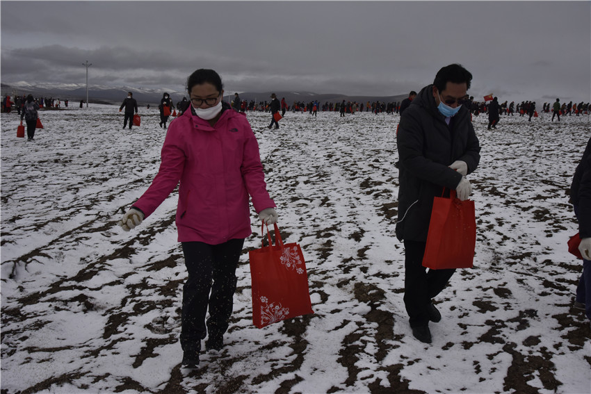 近日,受海拔和氣候條件影響的石渠縣迎來(lái)了晚春,該縣1000余名干部群眾來(lái)到距縣城20余公里的德榮瑪鄉(xiāng)生態(tài)草場(chǎng)保護(hù)建設(shè)示范點(diǎn),開(kāi)始了一場(chǎng)干群共同參與的種草、滅鼠行動(dòng)。