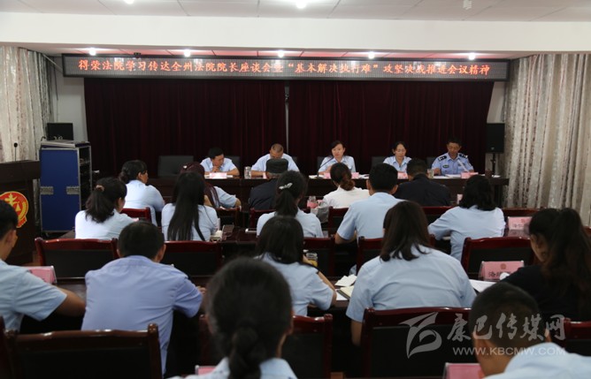本網(wǎng)訊(志瑪擁忠)為深入學(xué)習貫徹黨的十九大和十九屆二中、三中全會精神,全面貫徹落實省委十一屆三次全會精神,8月6日,我院組織全院干警于四樓會議室召開干警大會,傳達全州法院院長座談會暨“基本解決執(zhí)行難”攻堅決戰(zhàn)推進會精神,院黨組書記、院長孫菊花主持會議。