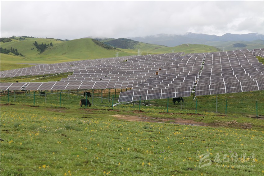 鄉(xiāng)城縣畜牧局工作人員羅印忠告訴記者,光伏電矩陣下的牧草相較于矩陣之外長勢更喜人。光伏電項目工程的建設,在一定程度上改善水土流失和涵養(yǎng)水源??h畜牧局正在考慮發(fā)展光畜配套工程,在光伏電矩陣下實施種草工程,促進高原畜牧業(yè)發(fā)展,充分發(fā)揮項目扶貧效益。
