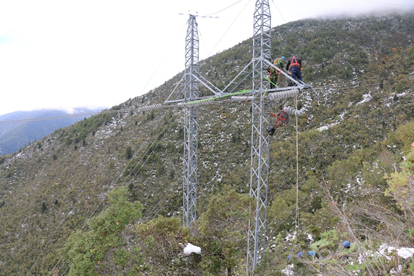 災(zāi)情發(fā)生當(dāng)晚,國網(wǎng)甘孜供電公司連夜組織多支應(yīng)急搶修隊伍,共計人員120余人、工程搶險車22輛趕赴現(xiàn)場,冒著雨雪對故障線路進行巡視,查找故障點。由于夜間大霧加雪,能見度低,搶險車無法開上鄉(xiāng)間小路,搶修人員只能攜帶著工器具徒步巡視,搶修人員深一腳淺一腳地走在又冷又滑的雪地里,打著電筒仔細(xì)查看每一基桿塔、每一處開關(guān)。經(jīng)過連續(xù)8小時的奮戰(zhàn),終于找到故障點,于4日下午4時全面恢復(fù)供電。
