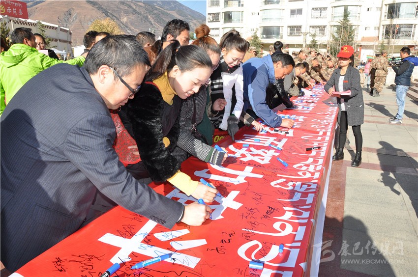 創(chuàng)建全國(guó)民族團(tuán)結(jié)進(jìn)步示范縣“萬人簽名”活動(dòng)現(xiàn)場(chǎng)。