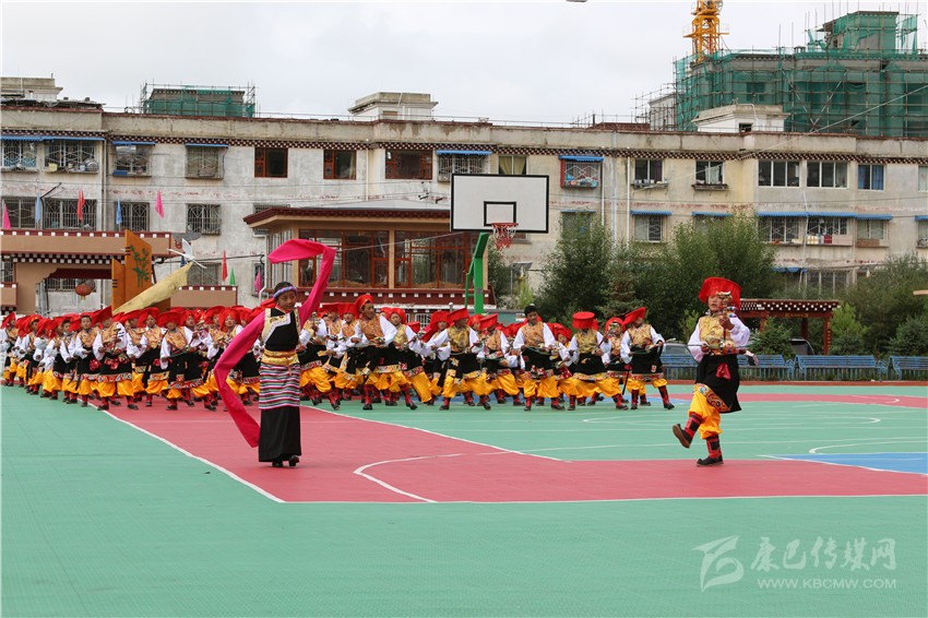 圖為當(dāng)?shù)刂行W(xué)生正在表演巴塘弦子。