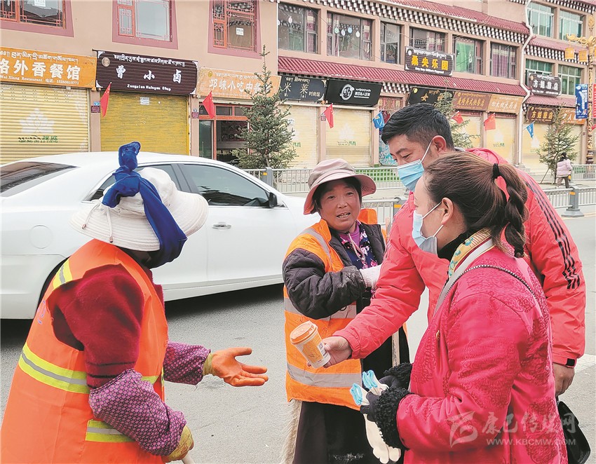 本網(wǎng)訊 近日,理塘縣圣地青年志愿者為該縣環(huán)衛(wèi)工人送去了奶茶和手套。