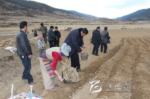 在格中村的田間地頭,到處是一片忙碌的春播景象。雷建平走進斯朗卓瑪的田間,在農業(yè)技術人員的指導下,從選種開始學起,病害的種丟掉、大的切成幾瓣,撒點底肥,均勻丟種,把蓋種的土弄成一個梯形的壟。雷建平一邊勞動,一邊和斯朗卓瑪攀談,去年土豆收成怎樣?有沒有增加收入?今年春耕生產有哪些實際困難?雷建平又接著向她推薦用地膜種土豆的好處,蓋不蓋膜大不一樣,1畝要多收500-1000公斤,加上上市早,價格也要貴一些,可以到臨近的甲洼鄉(xiāng)江達村去學習經驗。