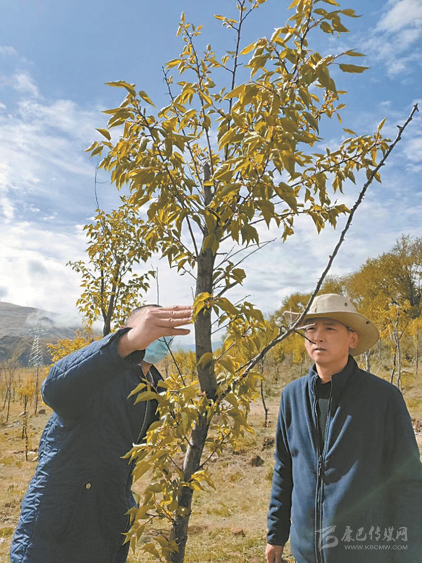 爐霍縣林草局技術(shù)人員檢查杏樹病蟲害情況。 爐霍縣林草局 供圖