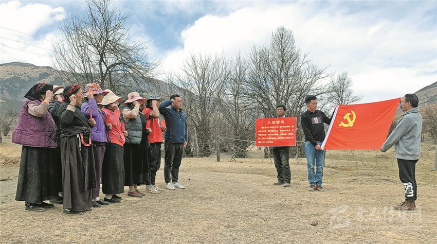 宣講結(jié)束后,提吾村全體黨員面對鮮紅的黨旗,高舉右手,再次莊嚴(yán)宣誓:“我志愿加入中國共產(chǎn)黨……隨時準(zhǔn)備為黨和人民犧牲一切,永不叛黨?!辩H鏘的誓詞,激勵著在場的每一位黨員,更加堅定了黨員們的入黨初心和奮斗使命。