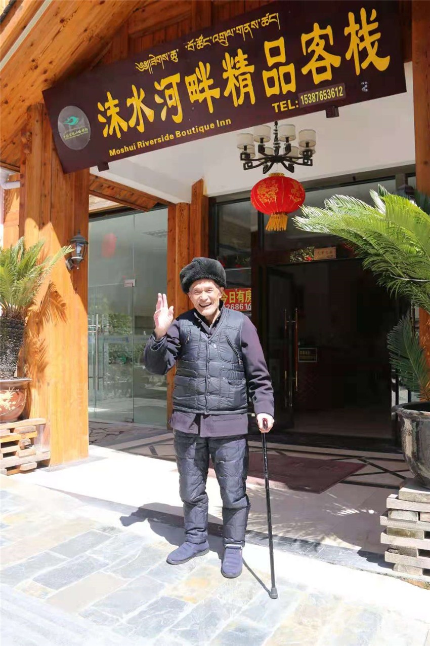 不知不覺中,采訪到了尾聲。伍國梁堅(jiān)持送記者離開,步伐雖緩,每一步都踩得很穩(wěn)。當(dāng)走出“沫水河畔精品民宿”大門時(shí),伍國梁一句“Welcome To MoXi!”令記者十分感動(dòng)。因?yàn)?,這話語背后,是一坐小鎮(zhèn)幾十年間的變化,也是一位耄耋老人對(duì)逝去歲月的認(rèn)可,還有對(duì)未來的美好憧憬!