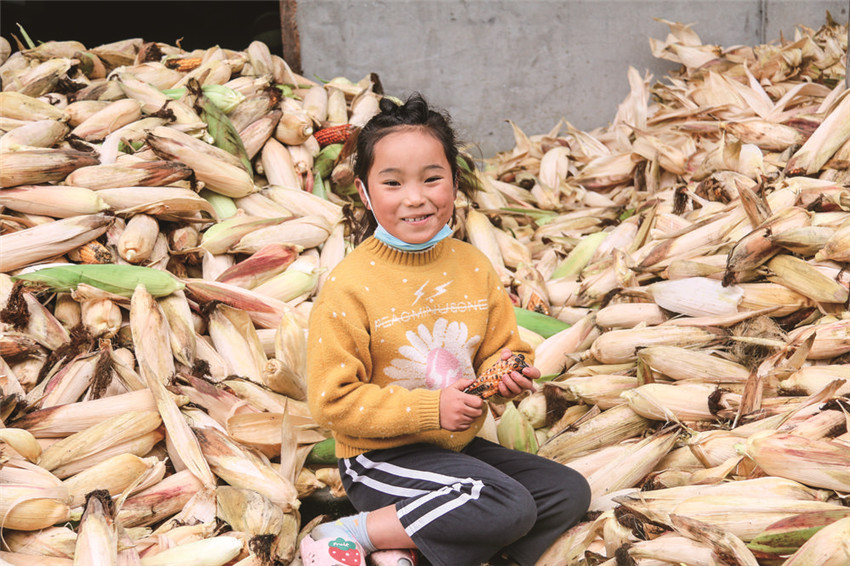 玉米喜獲豐收, 村民笑開(kāi)顏。