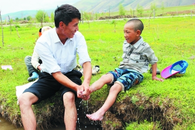 近日,筆者在仁果下鄉(xiāng)采訪時,看到一個年輕人正在給孩子洗腳。“這個孩子是你的親戚嗎?”“不是哦,他們都是我的學(xué)生,因為孩子太小了,就幫他們洗腳,希望孩子從小養(yǎng)成講衛(wèi)生的好習(xí)慣。”看著筆者不解的目光,他解釋說。