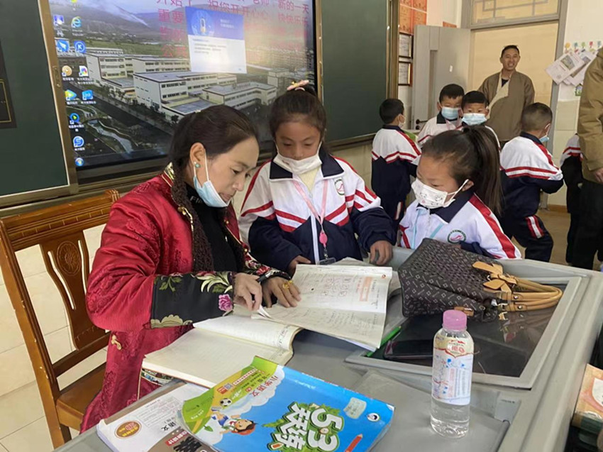 在老師的指引下,巴塘學子有序到校。