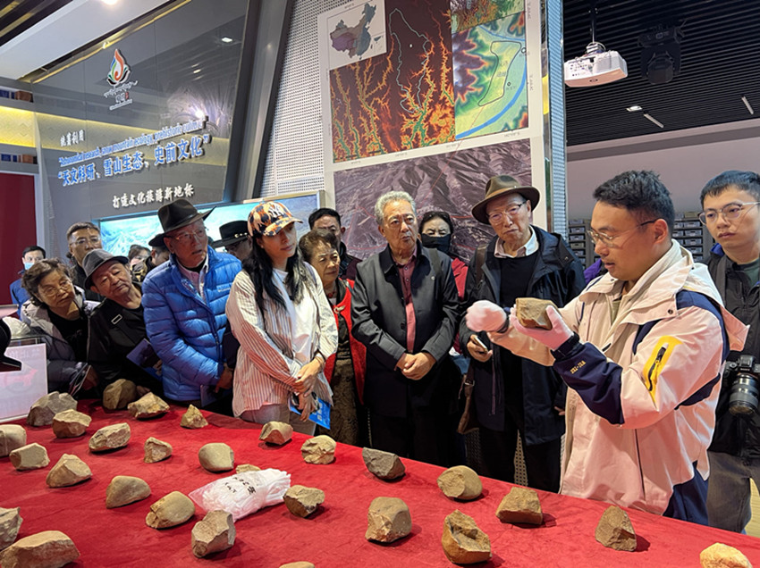 來自省內(nèi)外學術界和演藝界的甘孜名人戴上手套近距離觸摸石器物品所傳達的歷史溫度。