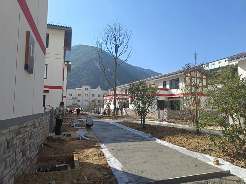 11月5日,記者走進(jìn)瀘定縣德威鎮(zhèn)奎武村“9·5”瀘定地震災(zāi)后重建集中安置點,只見一幢幢繪有“如意結(jié)”和穿斗裝飾等瀘定傳統(tǒng)建筑元素以及“瀘定紅”“紅飄帶”等民族特色的安置房沿大渡河畔依次排開,一條條寬敞平整的水泥硬化道路將這些風(fēng)貌一致、戶型合理、結(jié)構(gòu)安全的安置房屋串聯(lián)起來。幾十名工人正在安置點內(nèi)忙碌,有的在鋪設(shè)路面、有的在栽種綠化樹、有的在搬運廢渣……,拿到鑰匙的部分村民正在進(jìn)行室內(nèi)裝修,現(xiàn)場一派繁忙景象。