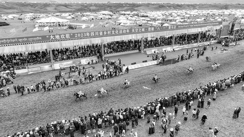 “中國藏族賽馬文化之鄉(xiāng)”“理塘八一傳統(tǒng)賽馬會”是四川涉藏州縣規(guī)模最大的賽馬會,賽馬傳統(tǒng)延續(xù)長達(dá)400余年?!霸缇吐犝f過馬背上的理塘,今天終于親眼所見,實(shí)在不虛此行。草原追風(fēng),策馬飛奔,蹄聲如雷,震徹山野,這是多么壯美的理塘萬馬奔騰圖啊!多想遠(yuǎn)離城市的喧囂,策馬揚(yáng)鞭,馳騁草原,豪邁瀟灑,勇往直前。以后每一年的理塘賽馬活動,我一定會帶上家人再來這里,因?yàn)槔硖粒芍^是心靈棲息的地方。”在“大地歡歌”2023年四川省鄉(xiāng)村文化活動年——天空之城·理塘“八·一”賽馬會上,來自北京的游客石磊被當(dāng)?shù)刭愸R文化吸引,和朋友玩得不亦樂乎。
