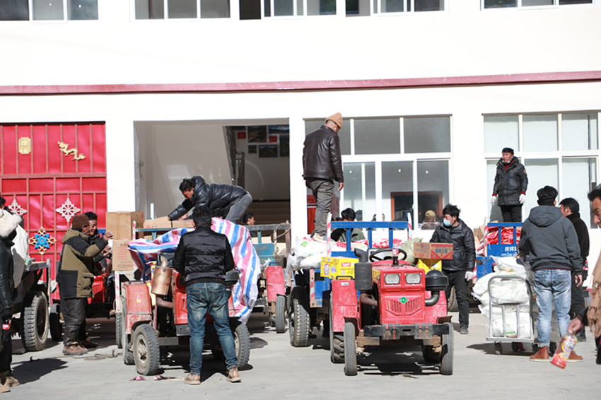 “今天我們村的17戶村民來(lái)領(lǐng)物資,臨近春節(jié)了,這些生活用品的發(fā)放真是太及時(shí)了,感謝黨和政府的關(guān)懷,我們的生活真是越來(lái)越好了?!睙峒余l(xiāng)拉巴村村民昂布開心地說(shuō)。