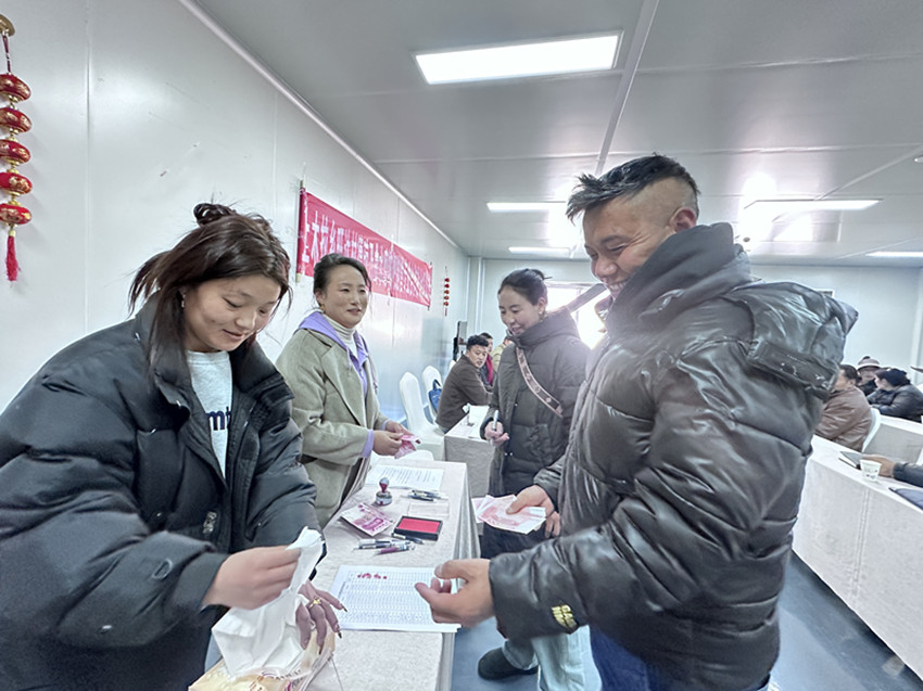 在隨后舉行的分紅儀式上,鄉(xiāng)黨委書記、公司負(fù)責(zé)人分別就合作方案、相關(guān)政策進(jìn)行了宣講,還對集體經(jīng)濟(jì)進(jìn)一步發(fā)展等進(jìn)行了分析和總結(jié),簽訂了深化合作協(xié)議。分紅現(xiàn)場,村民們有序地對賬、簽字、領(lǐng)取分紅,臉上洋溢著幸福的笑容。大家表示這一切都要感謝黨和政府的關(guān)心關(guān)懷和好政策,更加堅定了聽黨話、感黨恩、跟黨走的信心和決心。據(jù)悉,此次分紅主要是旺達(dá)村于2023年7月投入奶茶生產(chǎn)設(shè)備的收入,此次25戶群眾分得12500元現(xiàn)金,價值7500元的糌粑奶茶,共計20000元。