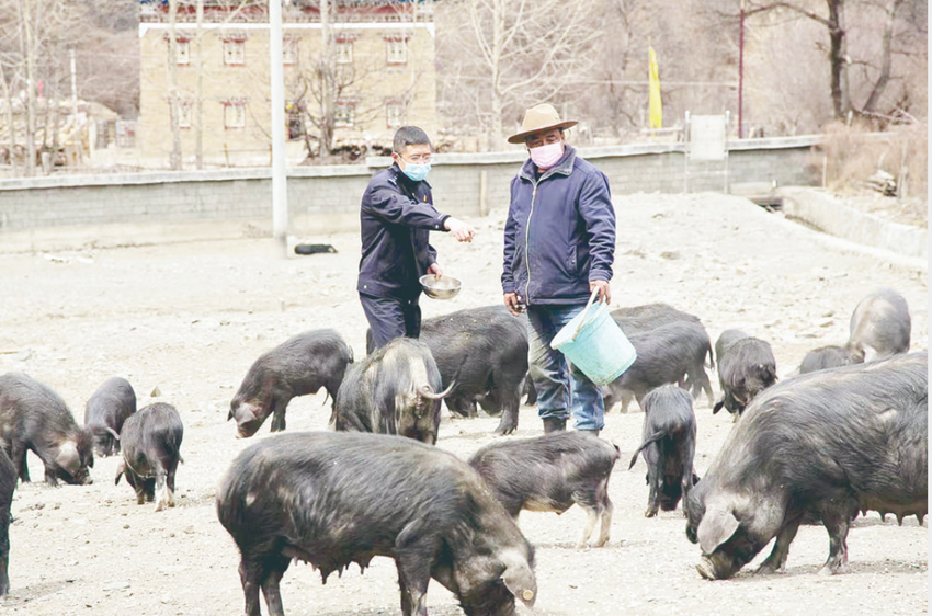 外來幫扶固然重要,但還必須解決自身“造血”功能。得知澤仁瓦吉家養(yǎng)了幾頭豬,是全村唯一的養(yǎng)豬戶,劉濤專門到他家了解情況,幫他想辦法、出點(diǎn)子,鼓勵(lì)他擴(kuò)大養(yǎng)殖規(guī)模,同時(shí)多方溝通協(xié)調(diào),為他爭(zhēng)取到3萬元的免息扶持資金。2016年,澤仁瓦吉家的養(yǎng)豬場(chǎng)辦起來了,當(dāng)年就飼養(yǎng)了100多頭藏香豬。2017年第一批豬出欄,澤仁瓦吉獲得了高達(dá)10萬元的凈利潤(rùn)。