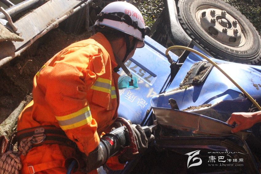 接警后,支隊(duì)指揮中心賡即調(diào)集1臺(tái)搶險(xiǎn)救援車和8名消防官兵火速趕往事發(fā)現(xiàn)場,實(shí)施救援。10時(shí)43分左右,消防官兵抵達(dá)事發(fā)現(xiàn)場。經(jīng)現(xiàn)場調(diào)查,了解側(cè)翻卡車是因剎車失靈發(fā)生事故,車頭被嚴(yán)重?cái)D壓變形,駕駛室中有一名被困人員被卡住無法動(dòng)彈?,F(xiàn)場情況十分緊急,指揮員立即組織安全員對(duì)事故現(xiàn)場安置警戒帶、警戒標(biāo)識(shí);破拆小組利用液壓擴(kuò)張剪斷器等救援器械對(duì)車內(nèi)被困人員實(shí)施破拆救援。20分鐘后,在消防官兵的努力下,受困人員被成功救出。