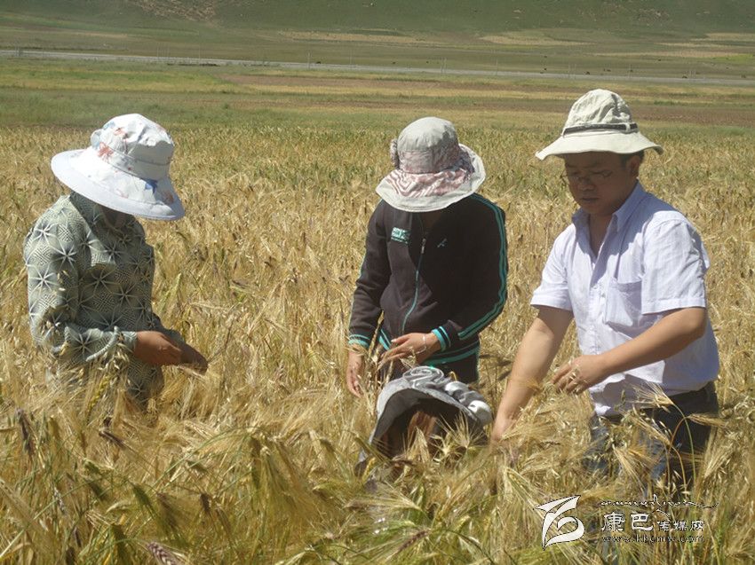 甘孜縣援藏干部人才下鄉(xiāng)估測青稞產量。